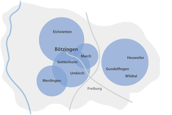 Die regionalen katholischen und evangelischen Kirchengemeinden beauftragen unsere ökumenische Sozialstation mit der Aufgabe der Pflege und Betreuung in der Region Nördlicher Breisgau.